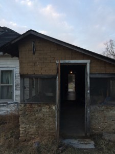 The dishcloths seemed wet in their drawer so I laid them out all over the kitchen, on the backs of chairs and draped over the counter spaces. I was searching for a tape measure in there, one of Helm’s favorite caches. Plenty of Sharpies in there, cutting boards, too. But no tape measure. I ended up grabbing an old yardstick from the rafters in the back porch. There is also a brand new Lowe’s measuring stick on the table in the first corner bedroom.
