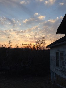 The light trickling away, I’m torn between enjoying what’s left of it by continuing to sit out here on the stoop or starting preparations for the colder dark by firing up the wood stove. Time moves fast down here tonight!