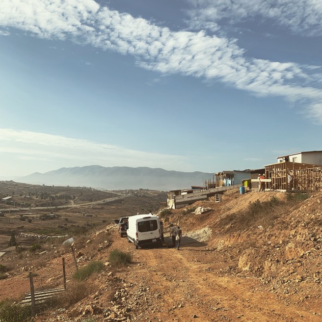 I’m tired. I’ve got my teeth to clean. There are road sounds but not many. I see planes traveling the same approach path to… Tijuana’s airport? But I can’t hear them. I saw cattle in a neighboring field. The surname of the family we’ll be building for is ‘Olivares’. It’s 21:20.