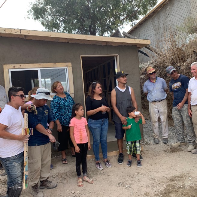 Jasmín speaks for a few minutes, she’s emotional, there are tears in her eyes. Rodrigo does the translating, a natural. Ricardo speaks. Ricardo’s mother speaks, tells us what it means to her that her son and his family have a place that is their own. A window, with a screen, looking out onto the road, down into one of the august valleys of Tijuana.