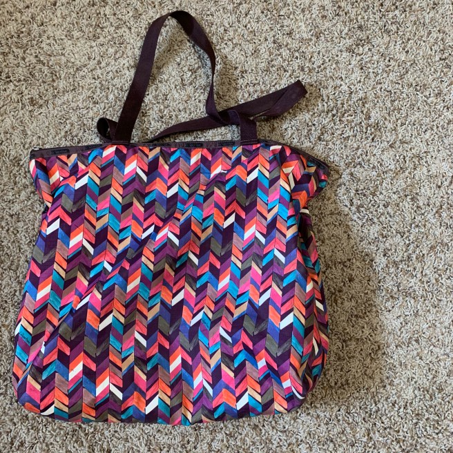 ° Bags continued. I also borrowed my wife’s colorfully patterned ‘Le Sport Sac’ over-the-shoulder bag to carry my tools in. It might not be the exact make and model of bag I’d go online and opt for out of all the options out there in the world. But of the bags we had on hand in the house it was the right size and seemed sturdy. So I went with it.