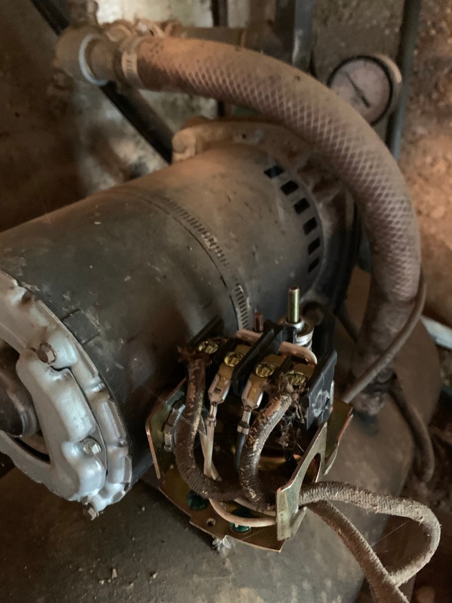 I arrived here late this morning, some dew still in the grass, the moisture bad for mowing. But that was fine because first priority was to get the well’s jet pump working better. When I left here two weeks ago the water was running but the pump would not reach its cut-out pressure; it would not kick off. A pump can’t run like that. If it does, it’ll burn itself out.