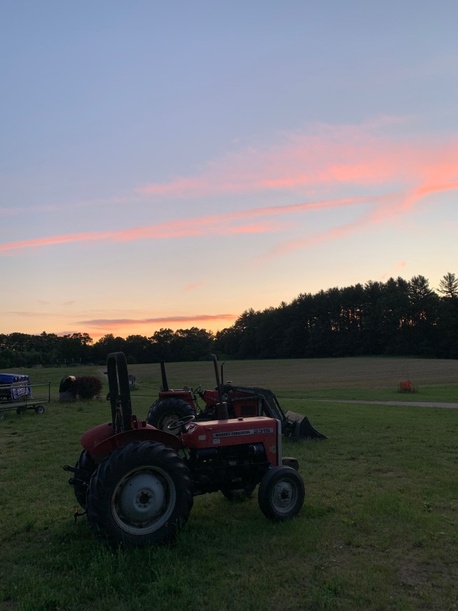 Anna and John cooked up one hell of a Father’s Day dinner. Some of the best swordfish I’ve ever had. Burgers, dogs, cukes, salad, corn on the cob, Randall’s baked beans. A feast. This was after John gave me a primer on operating one of the Massey Ferguson tractors sitting out back. With John standing on the back of the tractor, shandy in hand, I slowly drove that red diesel around Randall’s Farm, working the clutch, working the brake, testing the throttle. It was an unexpected treat, and one I won’t forget.