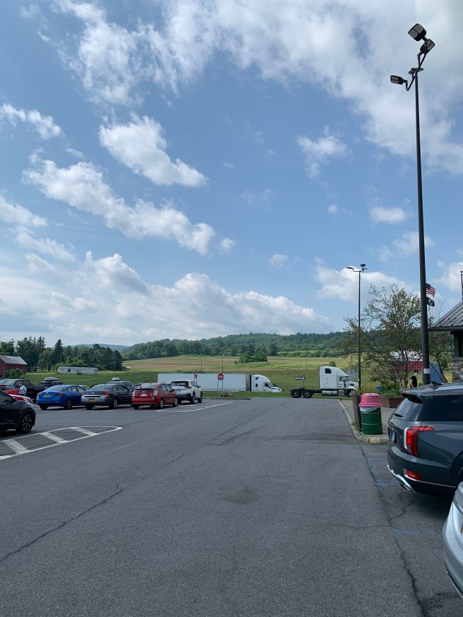 Never have so many trucks—semi-tractor-trailers—been on the road. Proof? We just passed a rest area east of Cleveland, en route Erie, Pennsylvania. The trucks were overflowing the parking lot, lining both the exit ramp leading to the rest area and the ramp leading back onto the highway from the rest area. I’ve never seen that before, not like this. My brother and my dad were thinking the same thing.