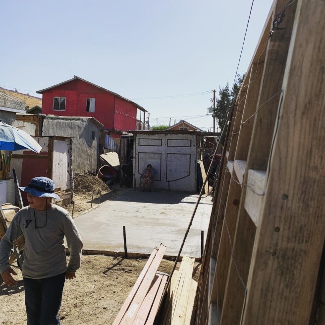I ate Cheerios with milk for breakfast. Drank plenty of milk. Had only a little coffee. Got myself ready in time. We left camp at 7:30. Mercifully short drive to the worksite in the Antorcha neighborhood east of Tijuana.
