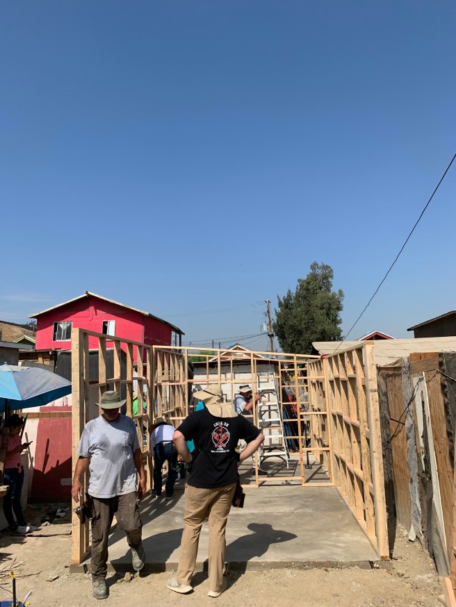 Dan was asking me about my flight, when it gets in. I said, “Yesterday!” To which he replied, “Great!” But all is not great. One of the flights scheduled to bring in some of our group from the San Francisco airport has been flat-out canceled. This will delay us for sure. How long, that’s the question. The plan was for everyone to meet at the San Diego airport at 10:30 when some of us, including me, would go get the rental vans before returning to the airport to pick up most of the rest of the group. We have 15 to 20 people this year. Once we get to Tijuana we will camp east of the city, with mountains in the distance. This week we will build a basic 11’ x 22’ house for a family of four in the Antorcha neighborhood of Tijuana. It is an act of charity, coordinated by a ministry called Amor.