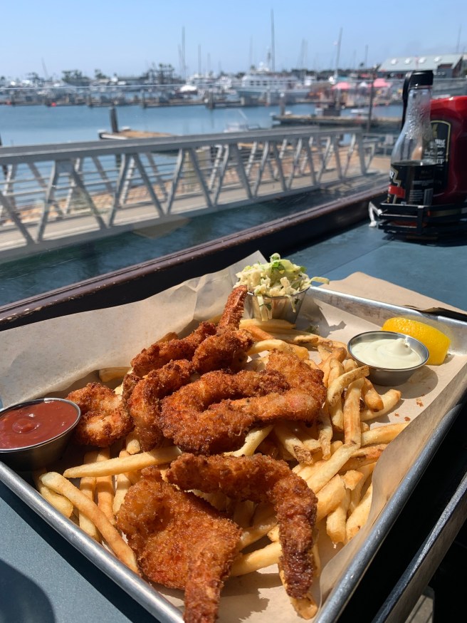 The food took half an hour to come out at Mitch’s but that fried shrimp was worth the wait. I had a ball cap on so I positioned it at a weird angle to block the sun. The left side of my neck still ended up getting red. My cheeks as well, but they’re always red.
