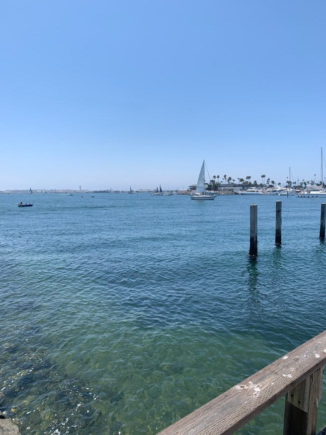I walked up and down the marina walkway. Can I call it a wharf? What is required for a wharf? The Point Loma marina was active. Groups would meet and walk out onto the docks to get on a boat. Some were small groups of friends. Some were bachelorette parties going out on audaciously decorated pontoons. Then there were the dozens of fishermen waiting to get onto a fishing boat at Fisherman’s Landing.