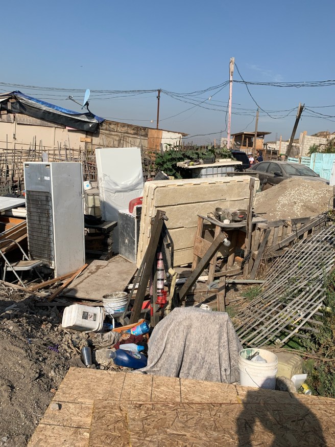 Incredibly, the place we rented our vehicles from, the ironically titled Car Rental Help Center, actually sent someone with a replacement Sonata to meet Dan at camp so they could swap out Cecilia 1 with Cecilia 2. Whenever a car needed to get out of the dead-end street we are on, we had to pick up the heavy wall panels and move them. Move them where? We decided to lean them up tall against the closest good fence. There are plenty of fences around but most of them don’t look so sturdy.