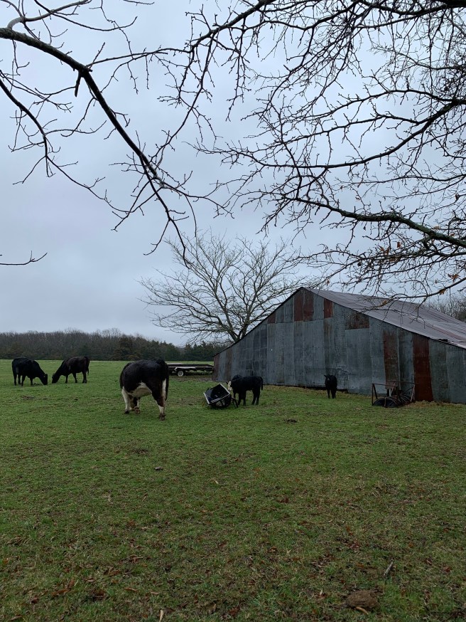 It’s a nice morning, it really is. Forty-three degrees, no wind, burgeoning sun. The cows quietly wander away.