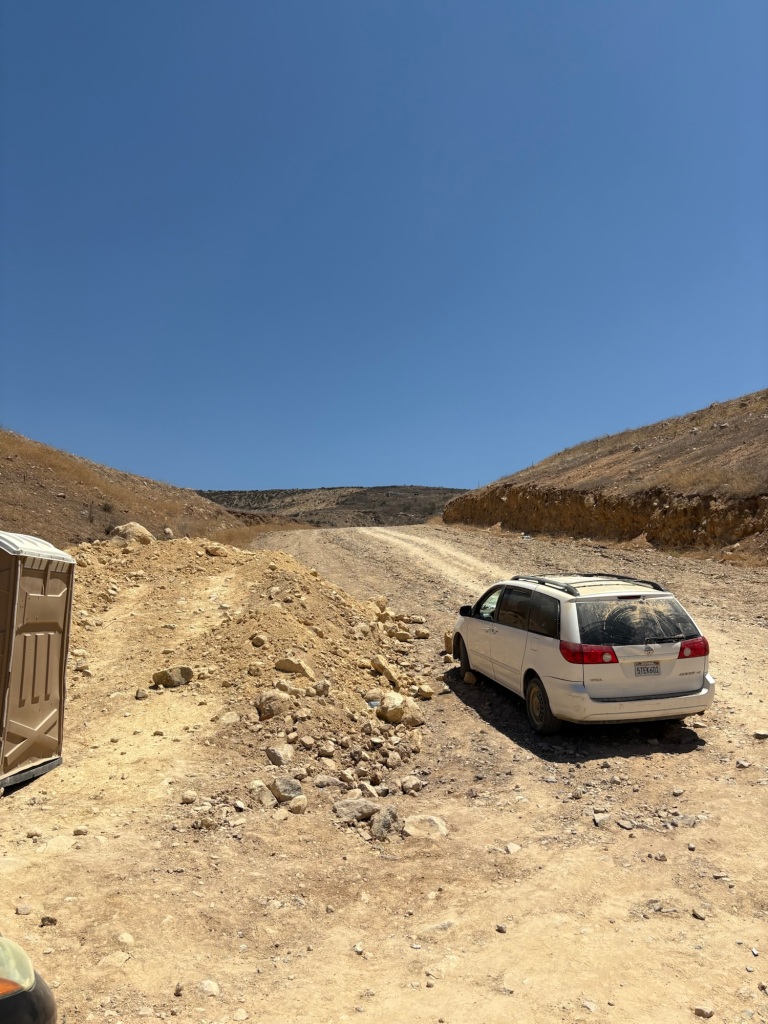Looking uphill from the new church site. That’s their minivan. And a baño they had delivered there. It is apparently easy to get one delivered. Jason called one in for us on the first day and it was on site in ninety minutes.