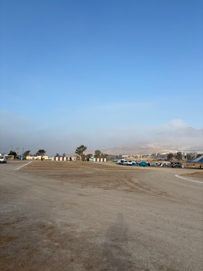 Smoky, humid morning at camp, Thursday June 24, 2025, Valle Redondo, MX. looking south, southwest.