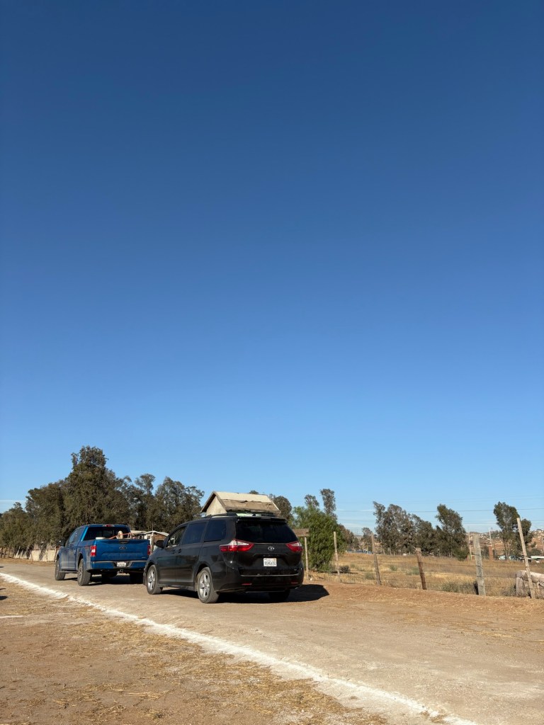 Last year I was driving Cecilia, the stalled-out Hyundai. This year I’m driving The Sound of Silence, a black minivan that’s in decent shape but in which very little music has been played. Frank escaped the fire that destroyed his Altadena, CA home early this year. But Big Blue, the big Ford he took on this trip many times, did not make it. This year he has a newer blue Ford, Baby Blue.