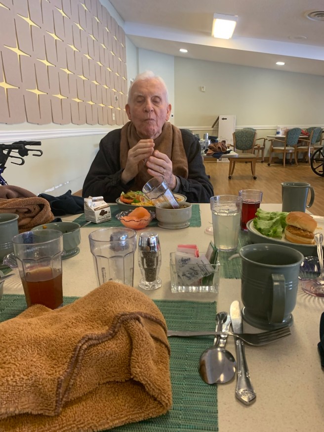 Tony is also gone to the hospital and someone named Kevin who I do not know. They went in a little after my dad did. I mentioned to Pat that my dad had barfed. Lester, apparently, did the same. It’s interesting to compare this norovirus incident with prior outbreaks of Covid. The concern level is lower. Although Covid seems to be more deadly, I don’t remember this many residents going to the hospital.