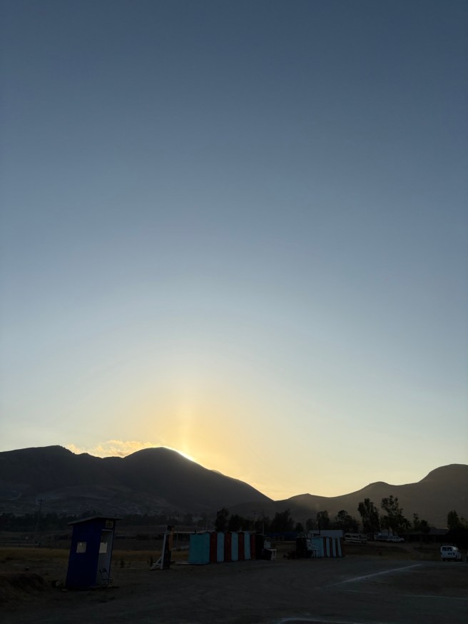 It was humid and smoky overnight. I was cold. To be without the blanket I need is an unfamiliar feeling. I didn’t sleep well. From one on I just tossed and turned, feeling chilly, with a dog barking, with a bit of a headache and eventually needing to make an urgent trip to el baño.