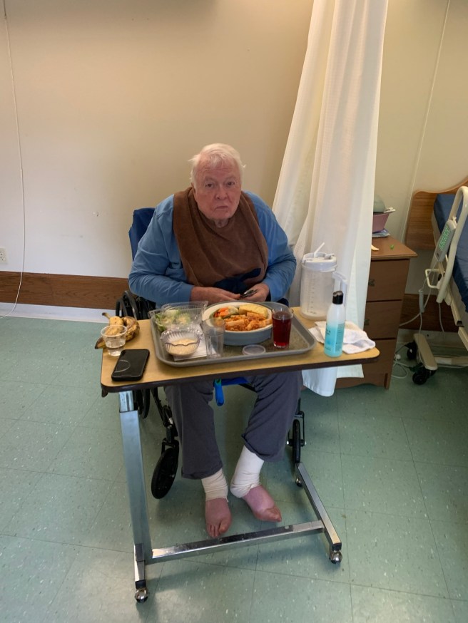 The shutdown will last for two weeks at least. That’s going to be hard. I miss Bob Lanaghan already. My dad moved from his room on A hall to this private/solo room on B hall that used to be Judith Tomlinson’s. It’s a nice big room. I like the privacy but I’d be getting to hear a lot of whatever Bob might be saying if Dad were still on A Hall. You can’t have it all.